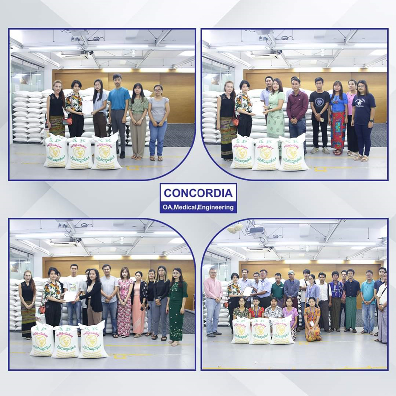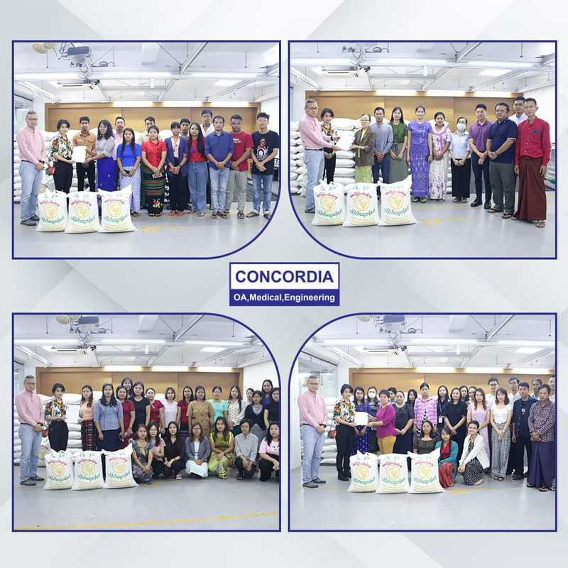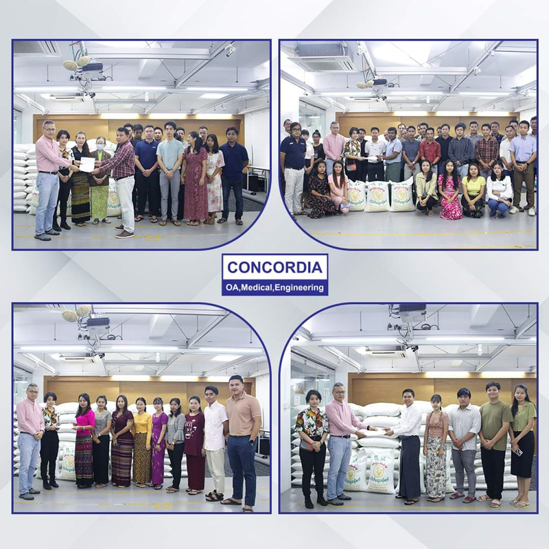 On August 17, 2023, CEO Dr. Than Win Family, Concordia International Co., Ltd donated premium-quality rice (24 varieties), in total 403 bags of rice (valued at $465 million) to its 403 staff members in Yangon, Mandalay, Nay Pyi Taw, Taunggyi and Magway by considering the well-being of its staff. On behalf of all recipients, we would like to express our deepest appreciation to Dr. Than Win Family.